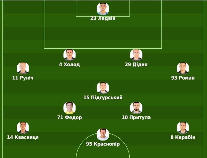 «Рух»: Ледвий – Холод, Дидык, Рунич, Пидгурский, Федор, Притула, Квасница, Карабин, Краснопир.