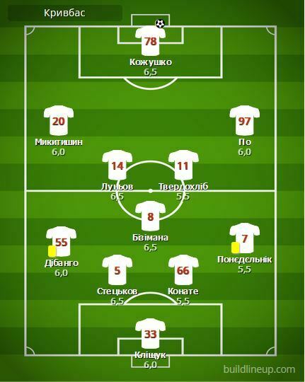 Заміни «Кривбаса»: Драмбаєв – 6,0; Вакулко – 5,0; Бандейра – 6,0; Хомченовський – 5,5; Кузик – б/о.