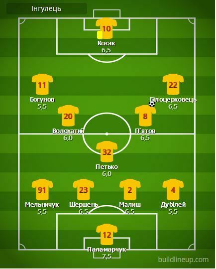 Заміни «Інгульця»: Сидоренко – 6,5; Пушкарьов – 5,5; Сад – б/о; Мисик – б/о; Лісняк – б/о.