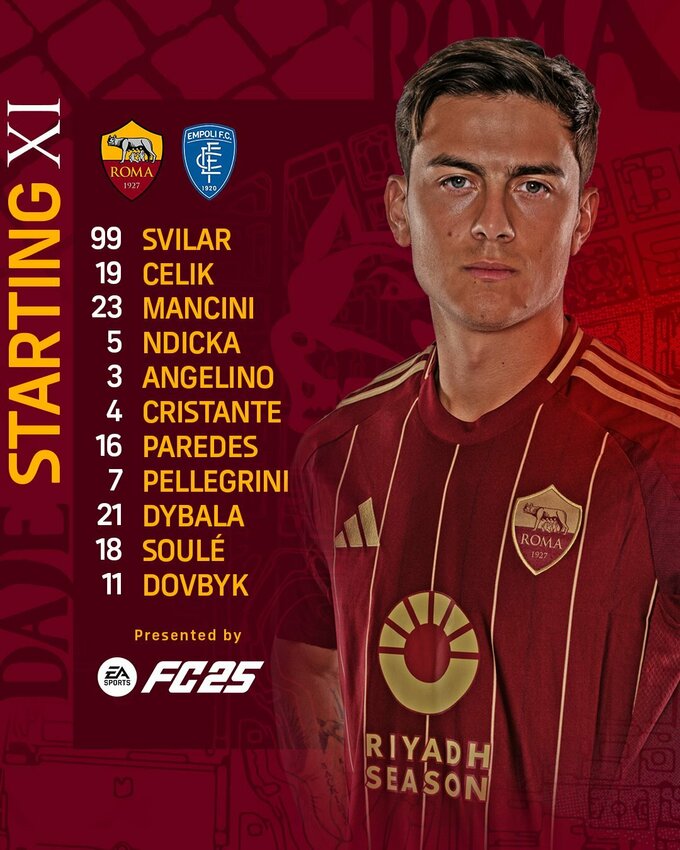 Наставники обеих команд определили стартовый состав на этот матч. Новичок «Ромы» Артем Довбик выйдет на этот матч в стартовом составе. Это будет первый матч Артема в Риме на «Стадио Олимпико».