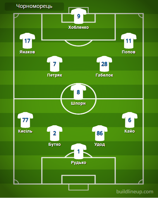 «Черноморец»: Рудько – Кисель, Бутко, Удод, Кайо – Петряк (Нето, 69), Шпорн (Белошевский, 69), Габелок (Васильев, 81) – Янаков (Пшеничнюк, 63), Хобленко (Калин,81), Попов.