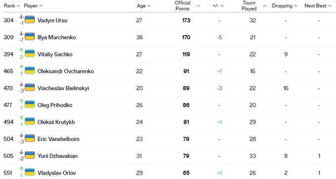Вадим Урсу дебютировал в статусе первой ракетки Украины, он опередил Илью Марченко. В топ-300 украинцев так и не появилось.