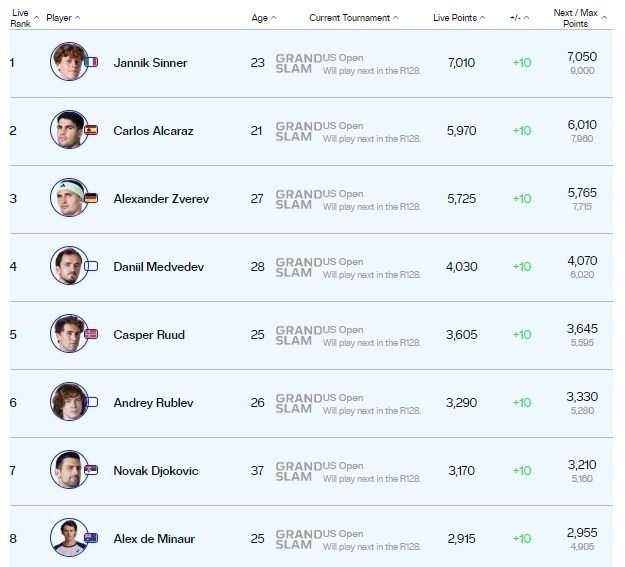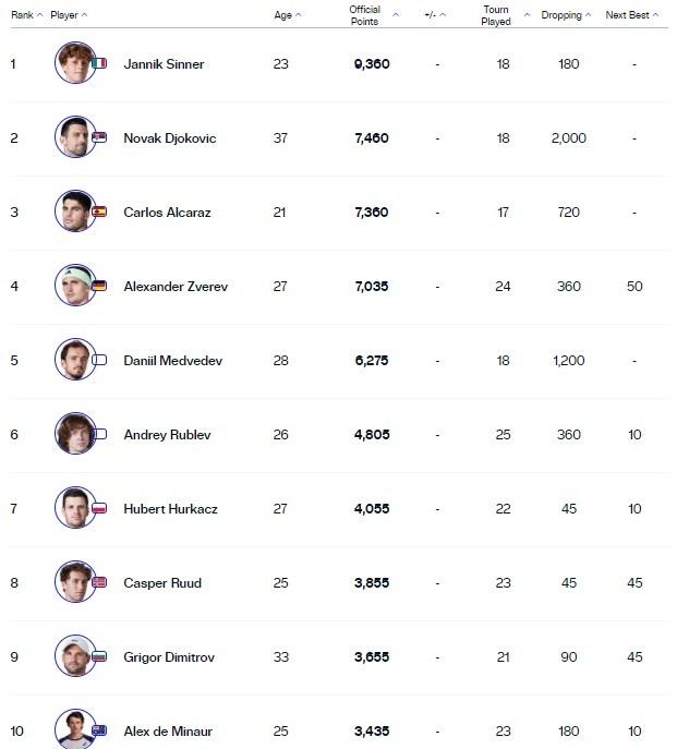 Победитель Лоренцо Сонего вернулся в топ-50, финалист Алекс Микельсен дебютировал в первой полусотне.
