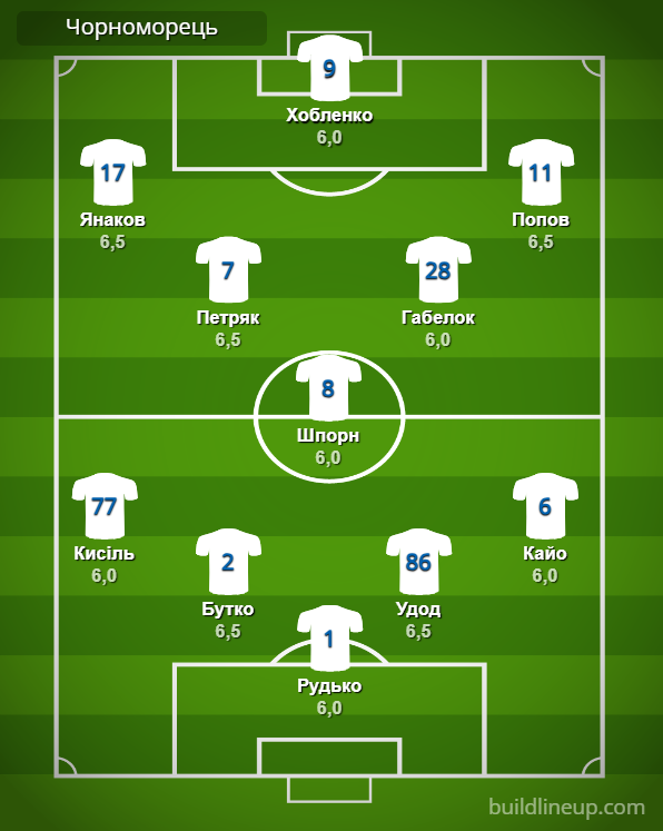 «Черноморец»: Рудько – Кисель, Бутко, Удод, Кайо – Петряк (Нето, 69), Шпорн (Белошевский, 69), Габелок (Васильев, 81) – Янаков (Пшеничнюк, 63), Хобленко (Калин,81), Попов.