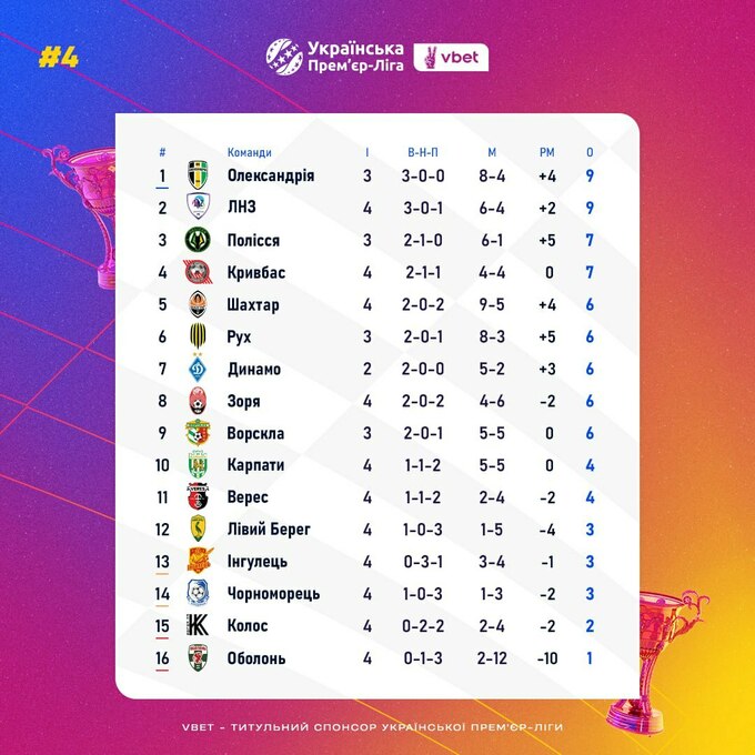 Турнирная таблица УПЛ. Два неожиданных лидера после 4-го тура