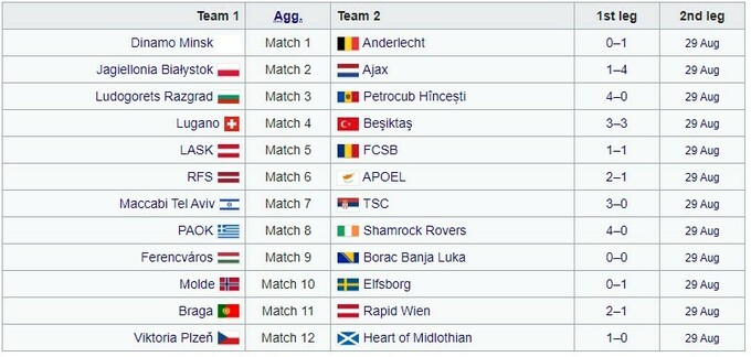 28 августа в число участников Лиги Европы добавились: Карабах (Азербайджан), Славия Прага (Чехия), Мидтьюлланд (Дания), Буде-Глимт (Норвегия).