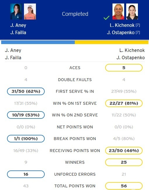 Людмила Киченок / Алена Остапенко – Джесси Ани / Джессика Фаилла – 6:3, 6:3