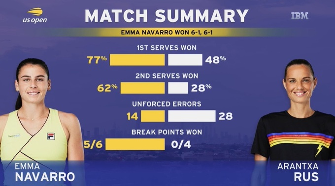 Четвертая ракетка США Эмма Наварро (№12 WTA) обыграла представительницу Нидерландов Аранчу Рус (№93 WTA) во втором раунде Открытого чемпионата США по теннису.