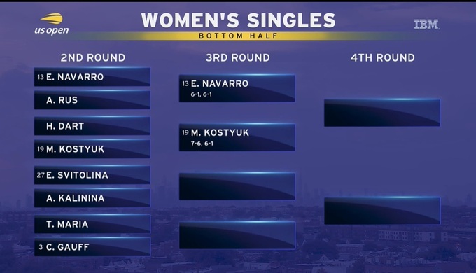 В третьем раунде 13-я сеяная американка сразится с украинкой Мартой Костюк (№19 WTA), которая ранее остановила британку Хэрриет Дарт (№78 WTA).