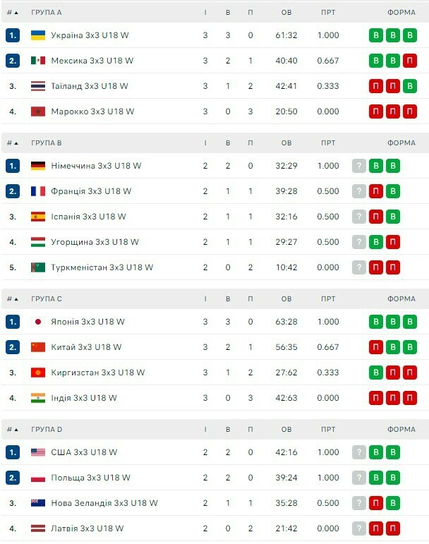 Женская сборная Украины U-18 выиграла группу и вышла в плей-офф чемпионата мира U-18 по баскетболу 3х3, который проходит в венгерском Дебрецене.