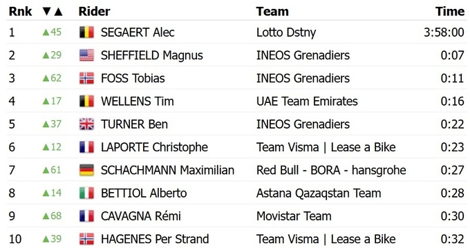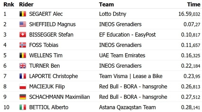 Сегарт опередил американца Магнуса Шеффилда из «Ineos Grenadiers» и швейцарца Штефана Биссэггера из «ED Education EasyPost» и вышел в лидеры общего зачета.