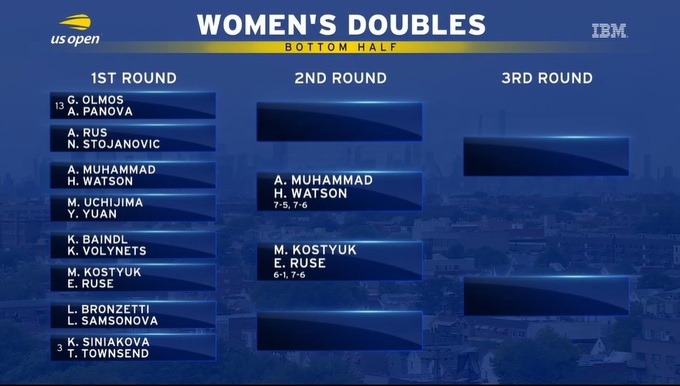 У Костюк и Русе далее по сетке победительницы матча Лучия Бронцетти / Людмила Самсонова – Катерина Синякова / Тейлор Таунсенд [3].