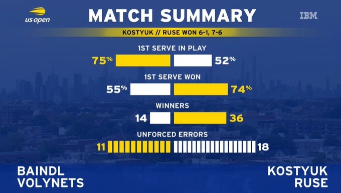 Костюк обыграла Байндл в матче парного разряда на US Open 2024