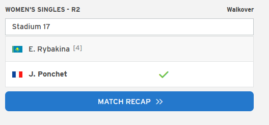 В матче второго раунда она должна была сыграть против француженки Джессики Понше (№143 WTA), но не вышла на матча.