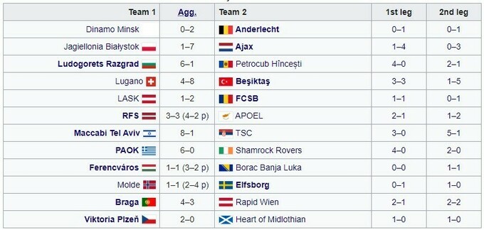 Турецкий Бешикташ, португальская Брага и бельгийский Андерлехт также вышли в основной раунд ЛЕ.
