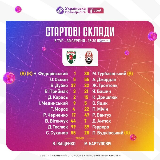 Оболонь – Заря. Стали известны стартовые составы