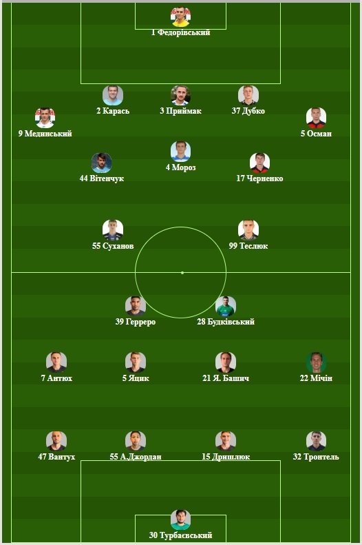 «Оболонь»: Федоривский, Осман, Дубко, Приймак, Карась, Мединский, Черненко, Мороз, Витенчук, Теслюк, Суханов