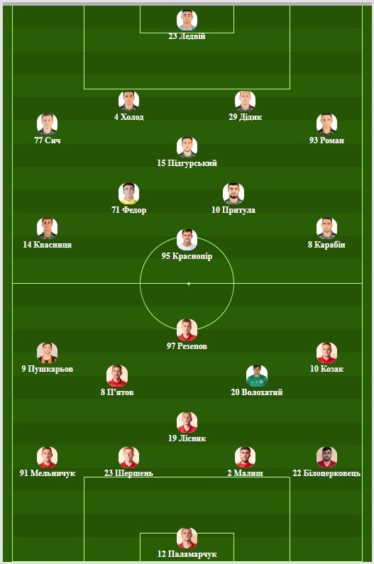 «Ингулец»: Паламарчук, Мельничук, Шершень, Малыш, Белоцерковец, Лисняк, Пятов, Волохатый, Пушкарев, Козак, Резепов