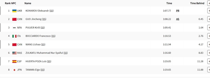Александр установил паралимпийский рекорд для заплыва в этом классе. При этом после половины дистанции Комаров уступал представителю Китая, но в итоге сумел опередить соперника на 0,45 секунды.