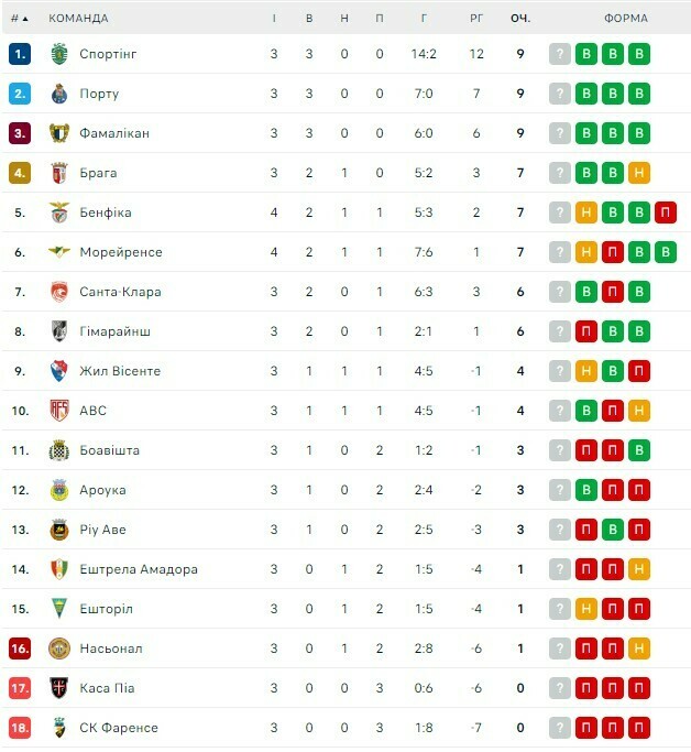 Бенфика занимает 5-е место в Португалии с 7 очками из 12 возможных. А лидируют Спортинг, Порту и Фамаликау (по 9 из 9).