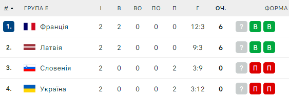 За 2 тура в квалификационной группе Е сине-желтые не сумели набрать ни одного очка. Подопечные Дмитрия Христича уступили Франции (2:7) и Латвии (1:5).