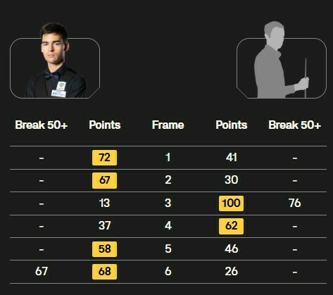 Проиграв две партии в дебюте, украинец выиграл 3-й и 4-й фреймы, сделав серию 76 очков, но затем венгерский снукерист оказался удачливее и выиграл матч.