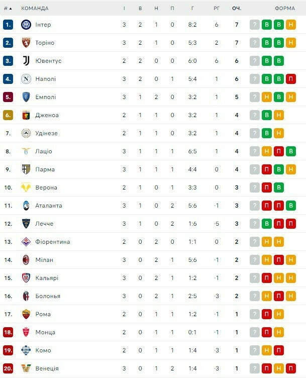 Вечером 31 августа состоялись матчи 3-го тура чемпионата Италии