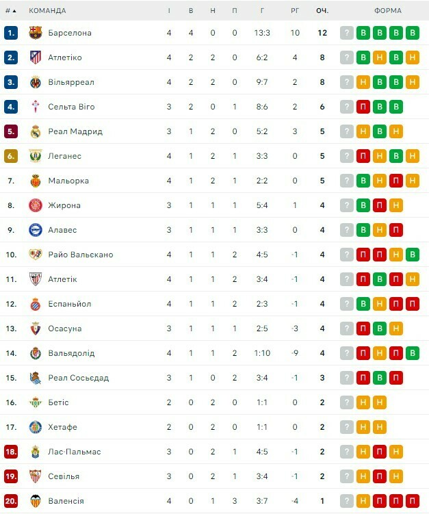 Вечером 31 августа прошли матчи 4-го тура испанской Ла Лиги.