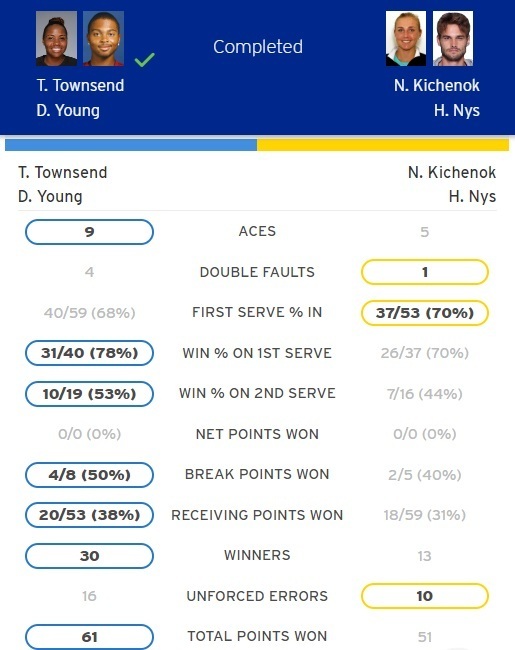 Надежда Киченок / Уго Нис – Тейлор Таунсенд / Дональд Янг – 5:7, 4:6