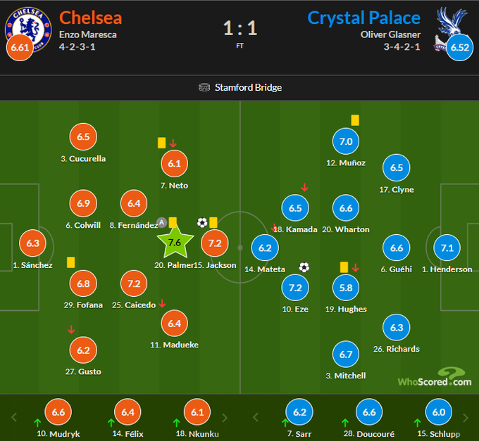 Лучшим игроком поединка был признан автор ассиста в составе Челси Коул Палмер (7.6).