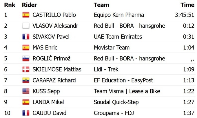 Испанский велогонщик Пабло Кастрильо стал победителем 15-го этапа Вуэльты-2024, который закрывал программу второй недели гонки. В борьбе из отрыва он опередил Александра Власова из «Red Bull Bora» и Павла Сивакова из «UAE Emirates». Для Кастрильо это вторая победа на нынешней Вуэльте.