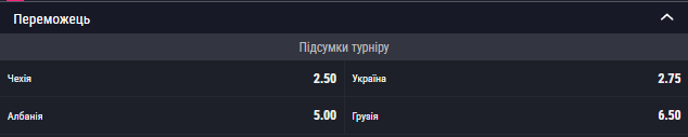 Успех Албании расценивается в 5.00, а Грузии – в 6.50.