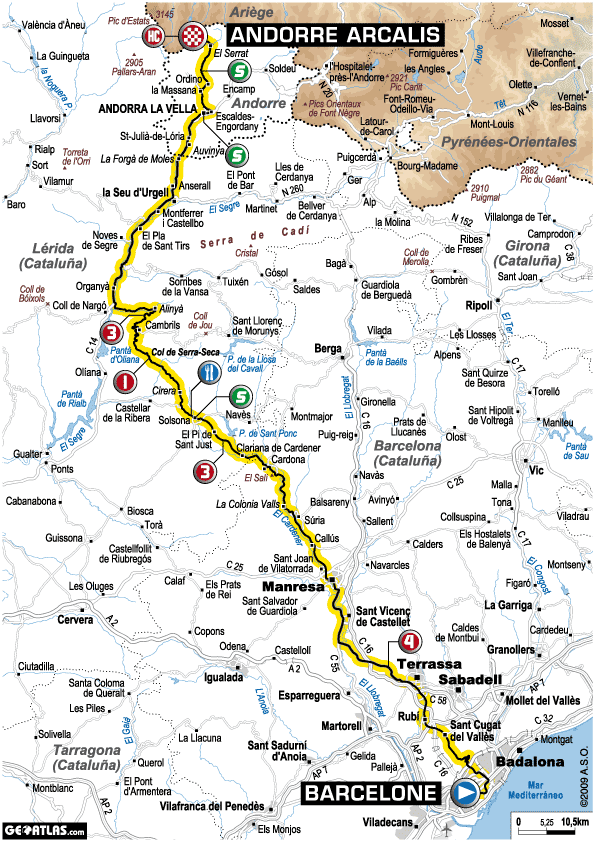 Следующий этап протяженностью 224 км пройдет в пятницу 10 июля по маршруту Барселона - Аркалис (Андорра). Прямая трансляция на телеканале Евроспорт с 14:45 до 18:30.