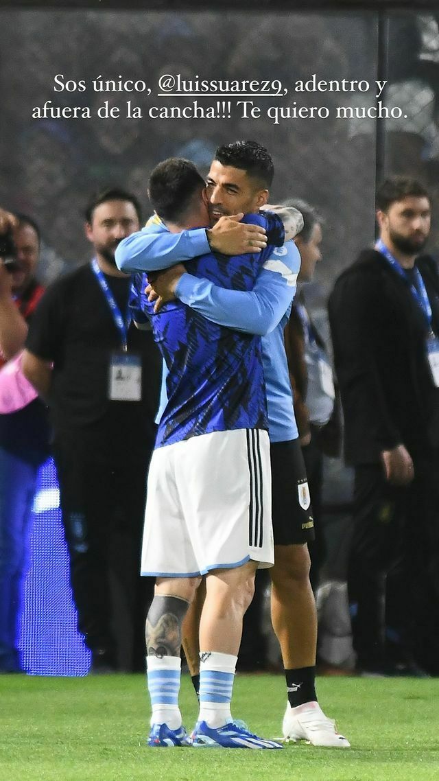 В сторис инстаграма аргентинец разместил фото, на которой он обнимает Суареса, и подписал ее: «Ты уникален и на поле, и за его пределами. Я тебя очень люблю».
