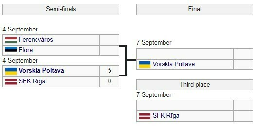 Полтавская «Ворскла» разгромила команду СФК «Рига» (5:0) на арене в Будапеште (Венгрия).