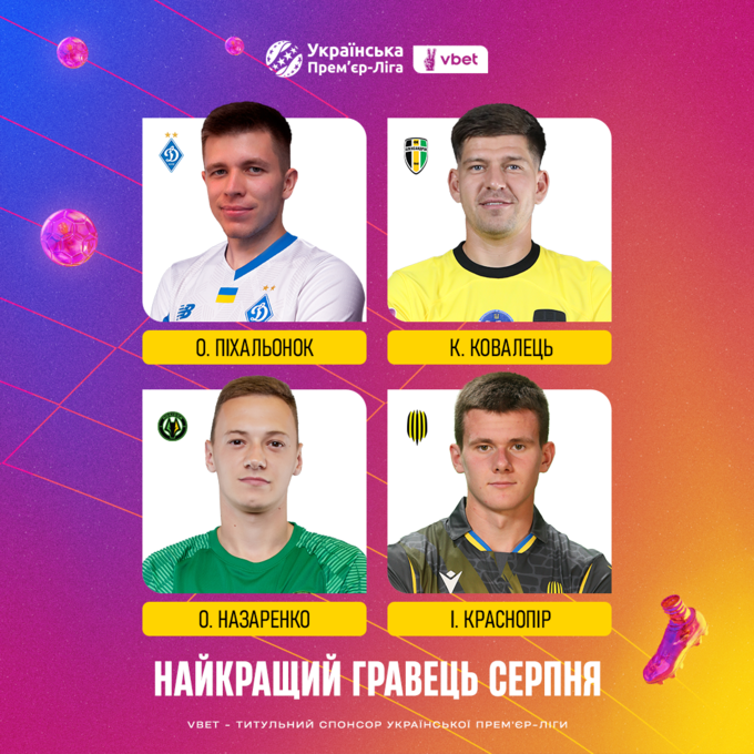 На звание лучшего игрока претендуют хавбеки Александр Пихаленок (Динамо), Кирилл Ковалец (Александрия), Александр Назаренко (Полесье) и форвард Игорь Краснопир (Рух).