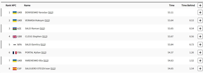 Украинский пловец Ярослав Денисенко завоевал золото Паралимпиады-2024 на дистанции 100 м вольным стилем (класс S12). Еще один украинец, Максим Веракса, стал на дистанции вторым.