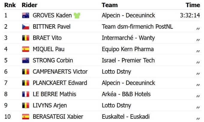В финишном спринте из пелотона Гроувз опередил чеха Павела Биттнера из «DSM Firmenich» и бельгийца Вито Брата из «Intermarche Wanty».