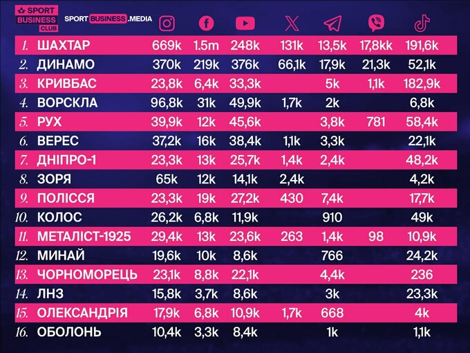 Активно делаем специальные проекты с аналитикой и рейтингами, интервью со спортсменами и менеджерами. Мы проанализировали динамику прироста подписчиков клубов УПЛ за октябрь 2023 и май 2024 гг., нашли много интересных фактов даже для руководителей этих клубов.