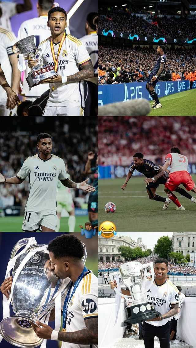 По факту своего отсутствия в списке претендентов на Золотой мяч-2024 Родриго выложил коллаж, отражающий моменты прошлого сезона, в котором бразилец выиграл с командой Лигу чемпионов, Ла Лигу и Суперкубок Испании. Пост Родриго сопроводил двумя эмодзи: «🤷🏾♂️😂».