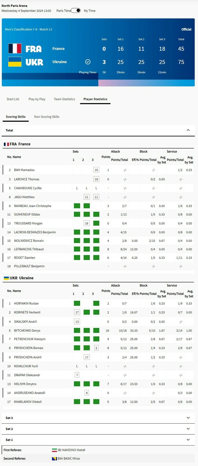 Франция – Украина – 0:3 (16:25, 11:25, 18:25)