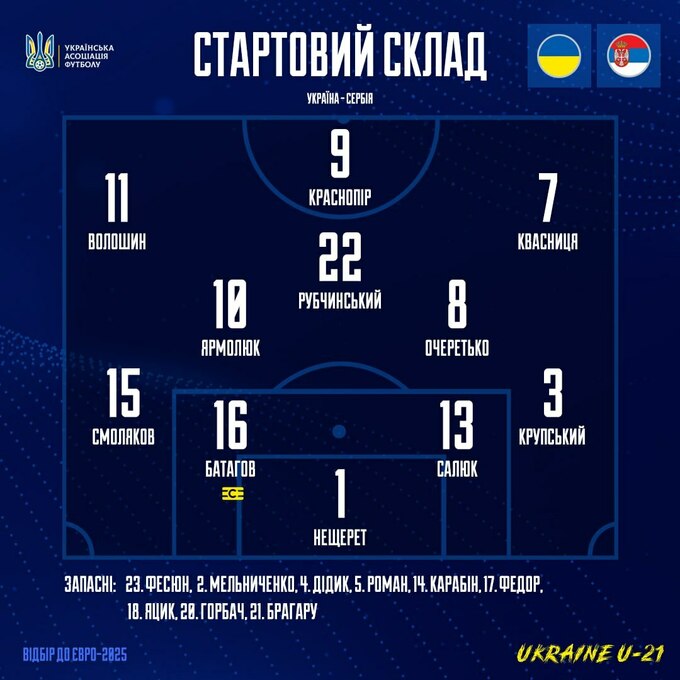 Мельгоса назвал стартовый состав сборной Украины U-21 на матч с Сербией