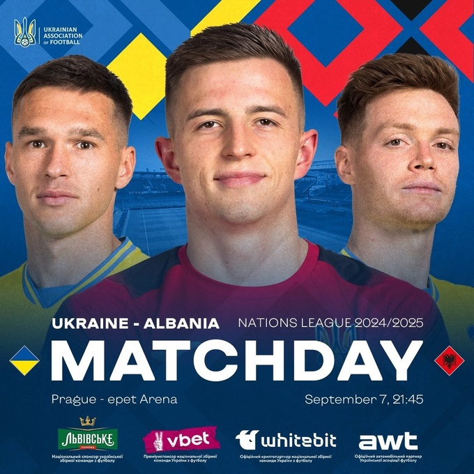 В 21:45 по киевскому времени в субботу, 7 сентября, в Праге (Чехия) начнется матч Лиги наций между сборными Украины и Албании.