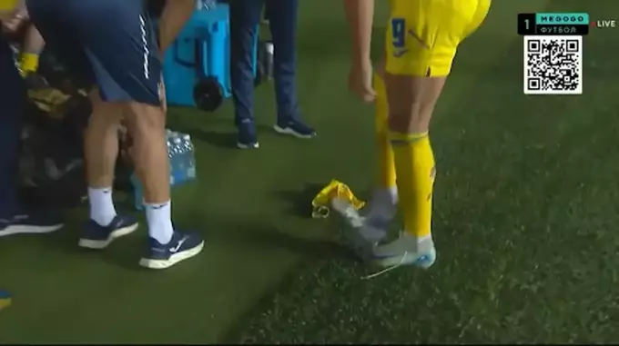 Матч должен был начаться в 21:45, но в итоге стартовал на несколько минут позже. Поединок задержался из-за проблем с гетрами у форварда сборной Украины Романа Яремчука. На гетрах были видны дыры, главный арбитр матча попросил украинца устранить эту проблему.