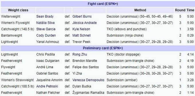 UFC. Шон Брэди – Гилберт Бернс – UD 5 (50–45, 50–45, 49–46)