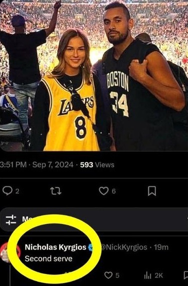 Один из болельщиков под опросом выложил фотографию Ника вместе с Анной Калинской, которая сейчас встречается с Синнером. Кирьос ответил: «Вторая подача». Через определенное время комментарий был удален.