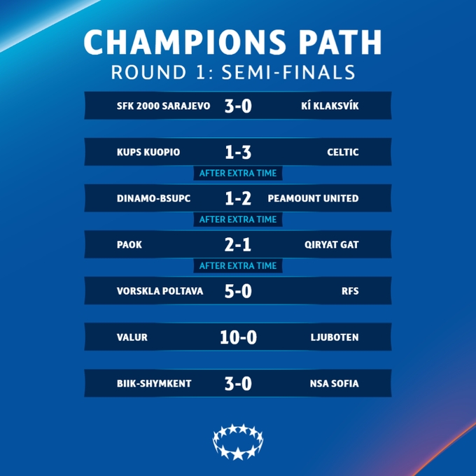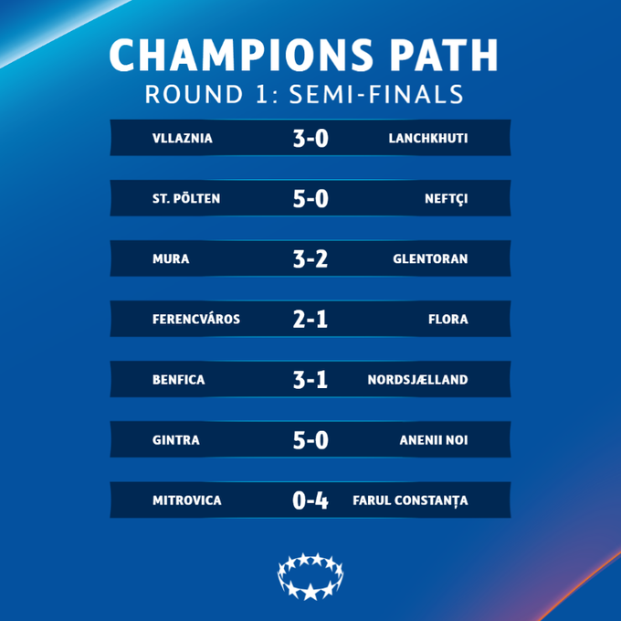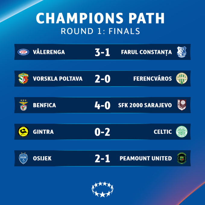 Полтавская Ворскла вышла во второй раунд, обыграв латвийский РФШ (5:0) и венгерский Ференцварош (2:0).