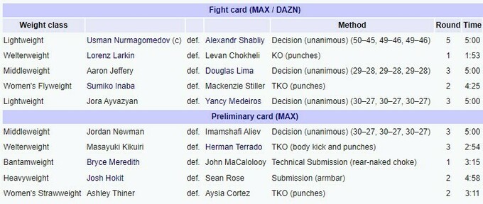 В одном из поединков в полусреднем весе (до 77.1 кг) сошлись американец Лоренц Ларкин (26–8) и грузинский боец Леван Чохели (13–2).