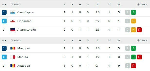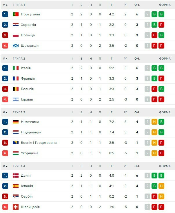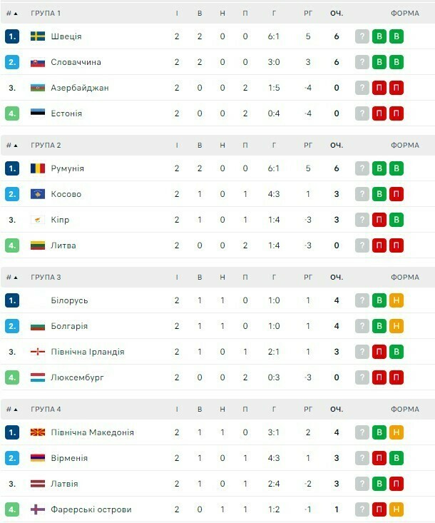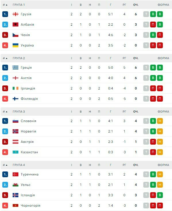 Турнирные таблицы. Украина идет без очков. Как не вылететь из Лиги наций?