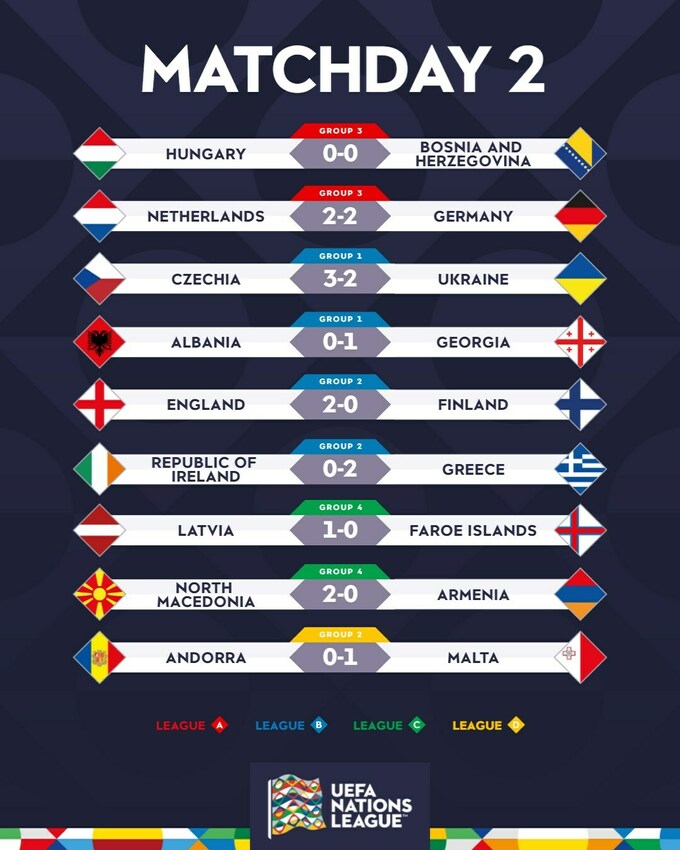 Вечером 10 сентября состоялись заключительные поединки 2-го тура Лиги наций.